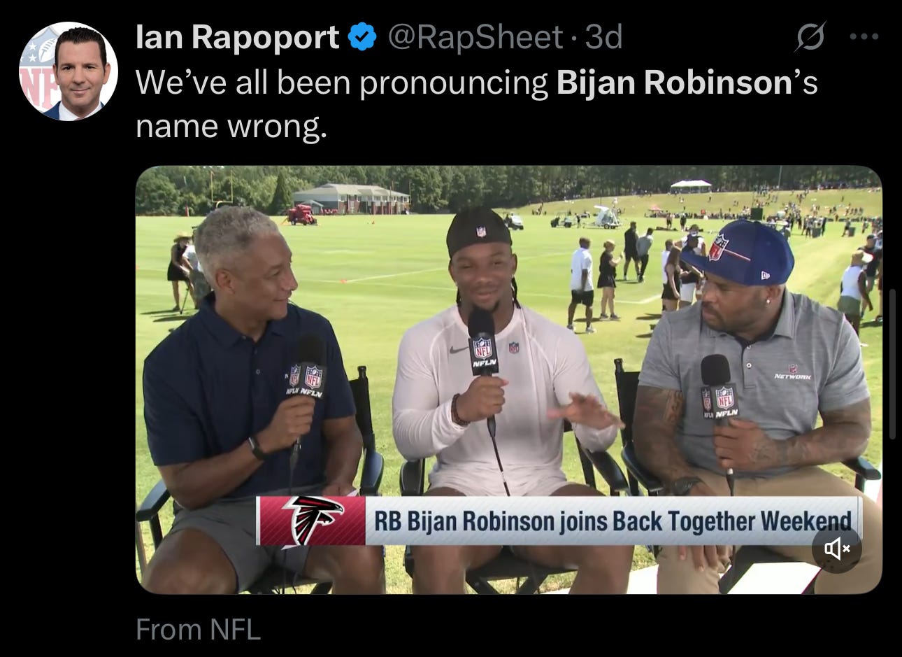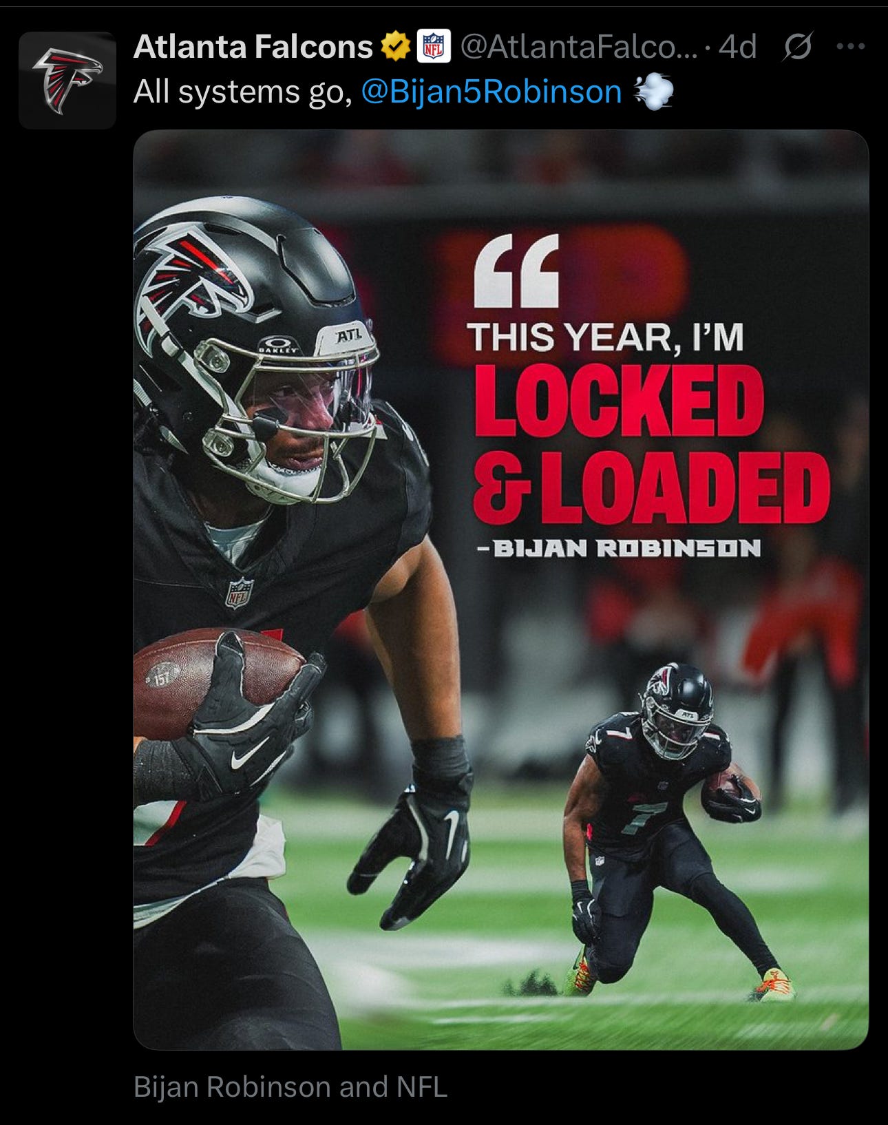 Bijan has had a buzz-worthy offseason, and it’s not because he called the world out for saying his name wrong the past 5 years (whoops!). He made the NFL Top 100 List for the first time in his 3-year career, coming in at #62 (let’s be real, he’s still way underrated).
