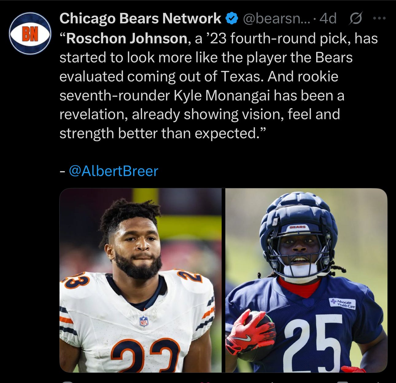 Roschon has been getting tons of love from Bears media and top reporters like Albert Breer this off-season!