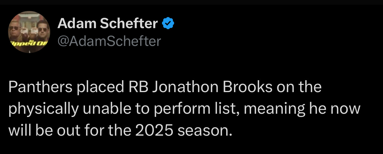 Almost went 3 full articles without linking a Schefty tweet, but here we are. There’s been very little reporting on Brooks this off-season. He only played 12 snaps in his 2024 campaign before reinjuring his knee, and it feels like the Panthers are keeping everything tight lipped about his recovery and future with the organization.