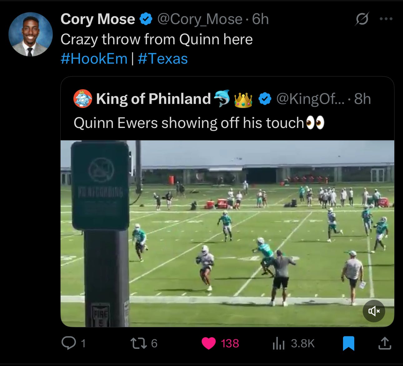 7th Round Draft Pick and former Texas Quarterback is lighting up Dolphins training camp.